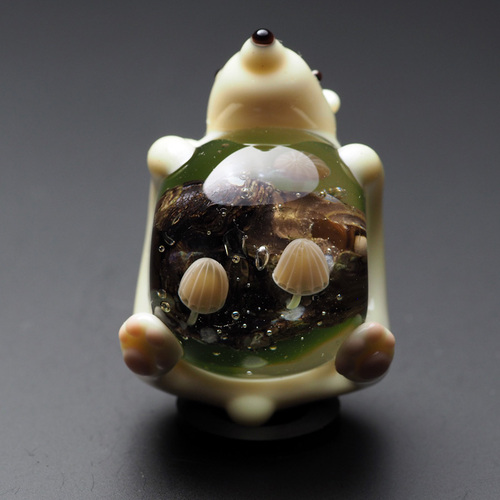 この作品はクマを安定して座らせることも、クマの背中を下に、キノコがよく見える姿で置くこともできます。