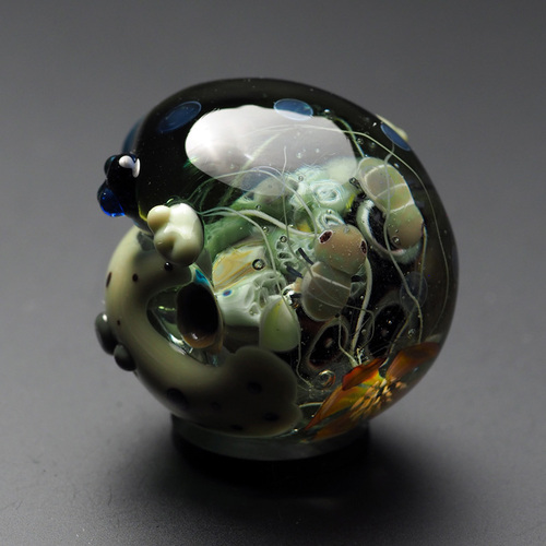 内部に蟲を棲まわせたバージョンとしてはめずらしく、青っぽく見える個体です。